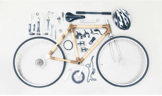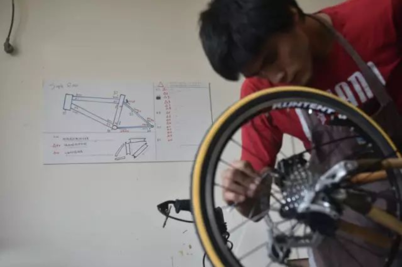 最后,按照用途,完成零部件组装,一辆竹子自行车就此诞生了。